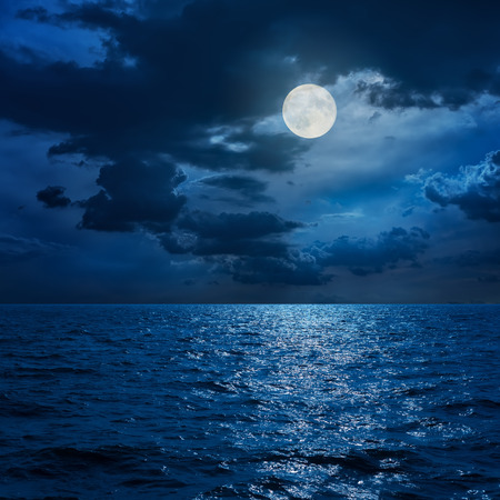 空コピー スペースと夜の海の上昇る満月 の写真素材 画像素材 Image